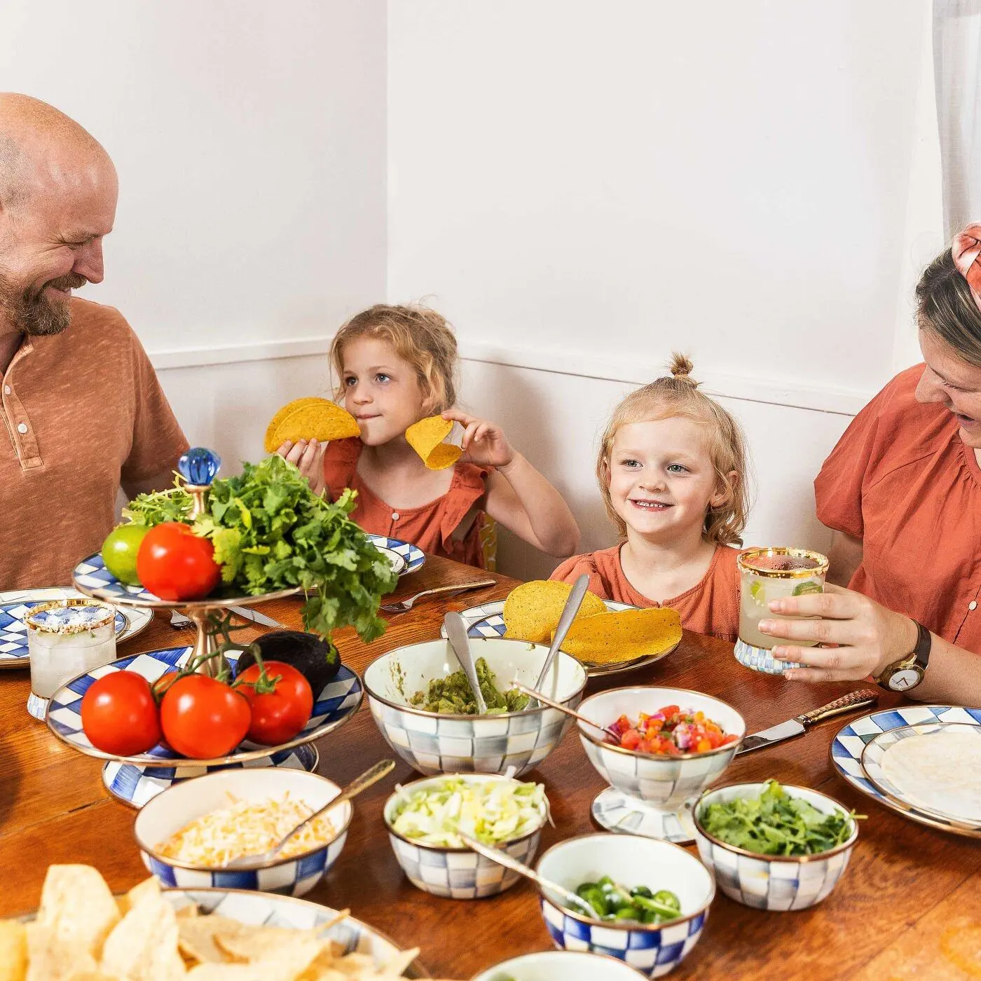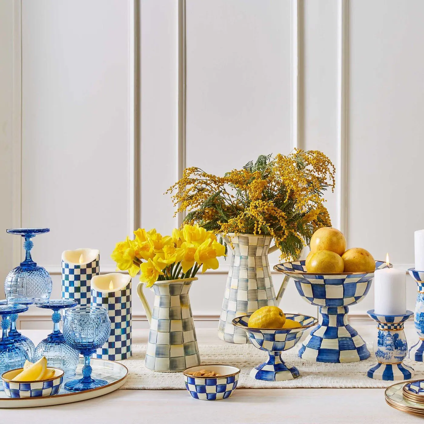 For masters of mise en place, our Royal Check Pinch Bowl makes prep work a stylish snap. With its just-right size and our blue and white checked pattern, this petite enamel pot is equally charming when brimming with paper clips in a home office or lemon wedges on the wet bar. The heavy-gauge steel underbody is glazed with hand-painted, color-dragged checks in a range of blue hues that are similar in theme to our popular Courtly Check? and rimmed in bronzed stainless steel.