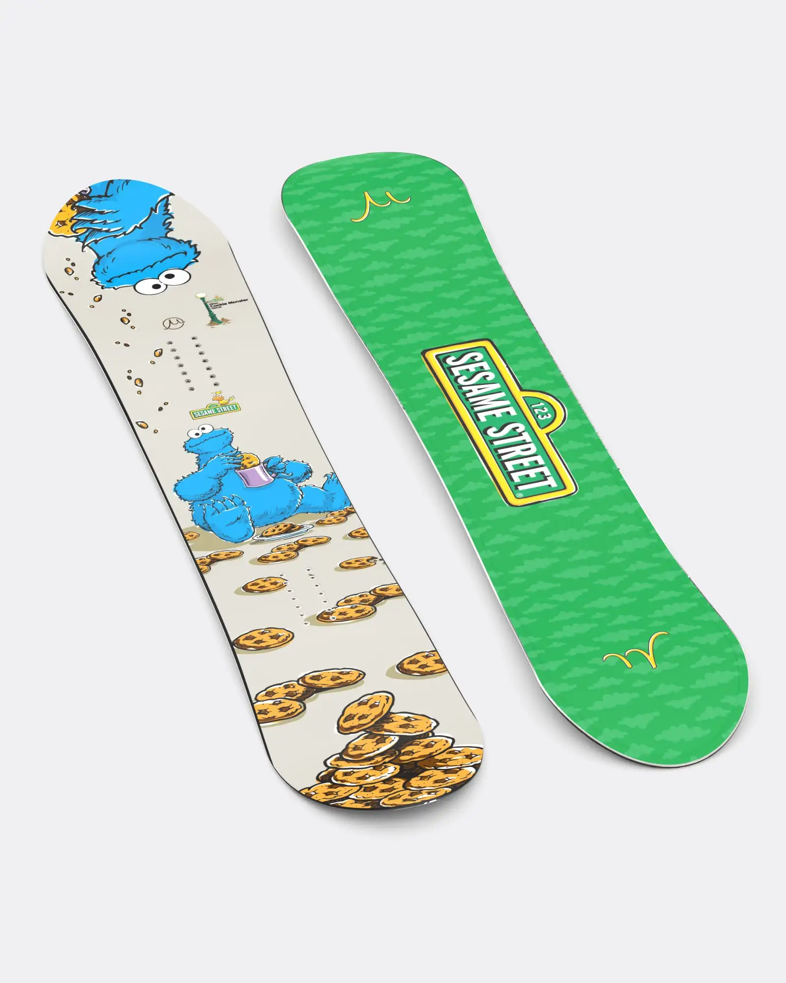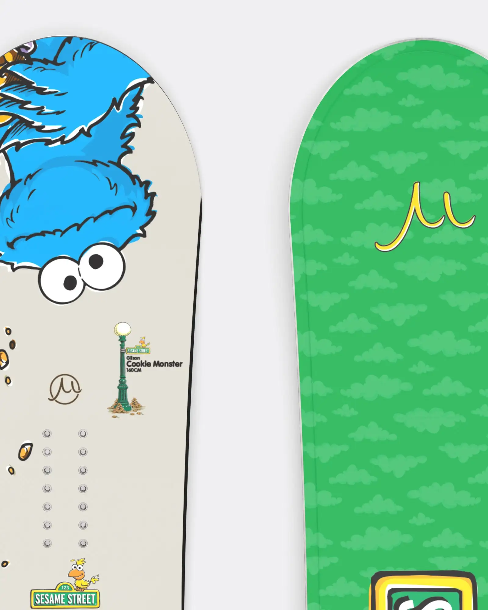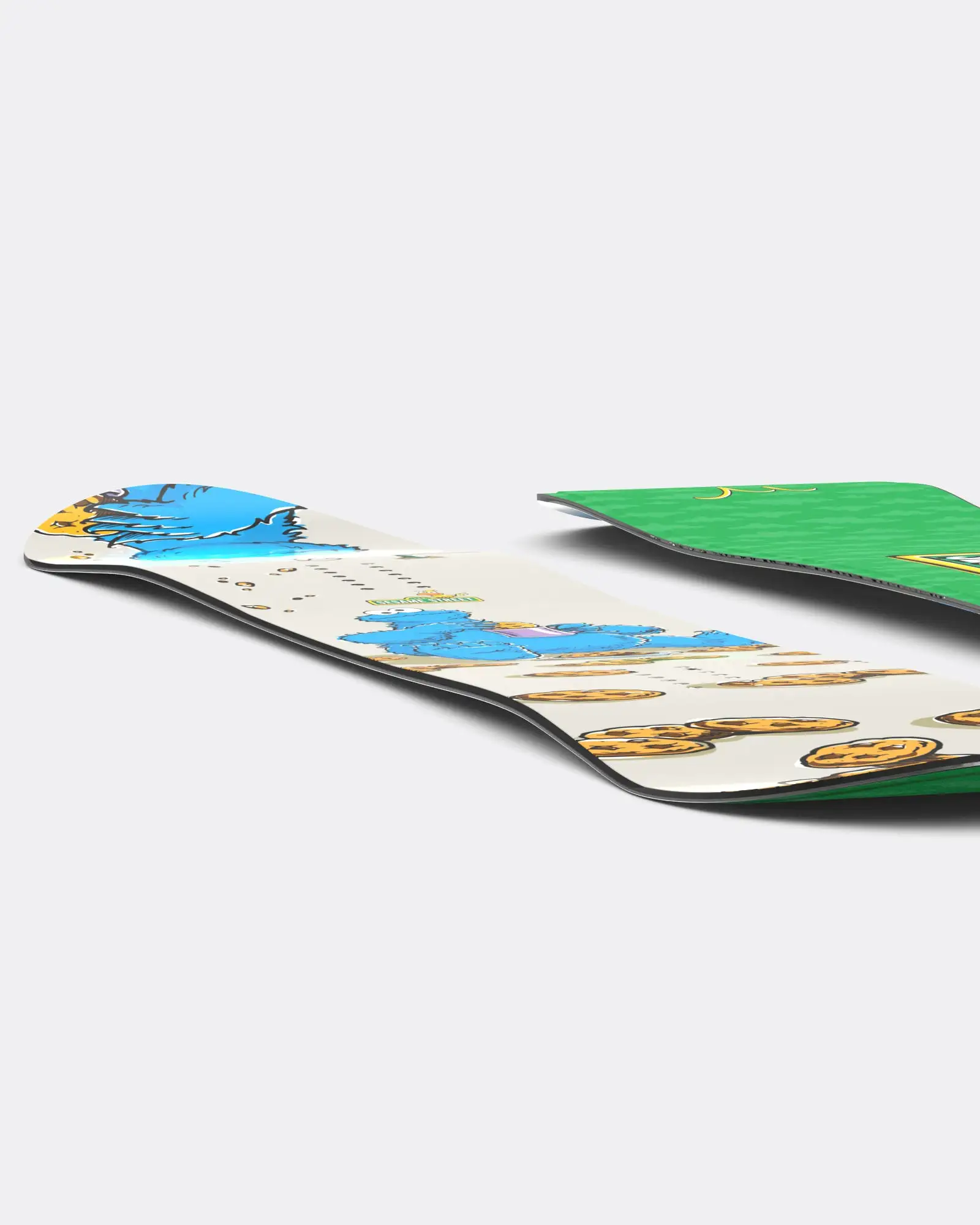 The Sesame Street Retro The Monster Snowboard is colorful, fun, and packed with personality just like Cookie Monster himself. Featuring stacks of cookies and playful retro artwork, this Limited Edition deck is made to turn heads on and off the mountain. Built on GILSON’s Hybrid Camber All Mountain design and backed by a 5 year warranty, it delivers smooth surfy performance across powder, groomers, and everything in between.