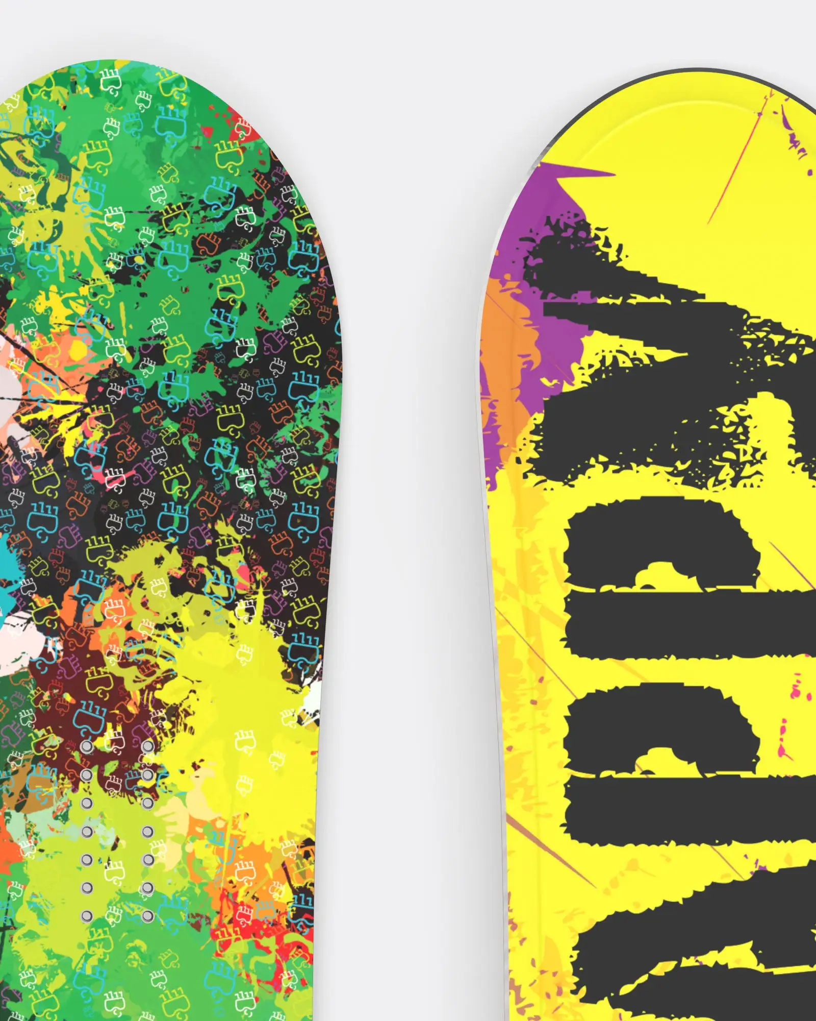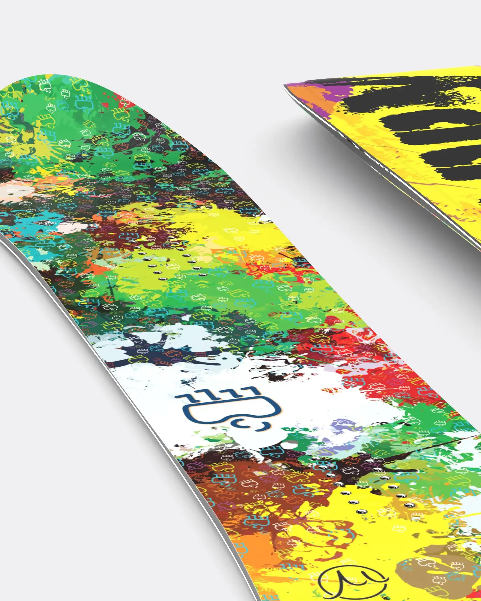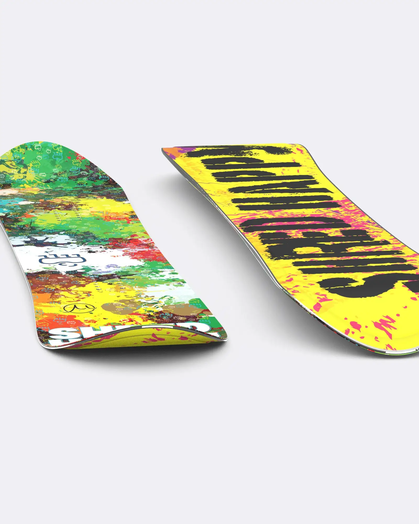 The Shred Happy Snowboard is loud, fearless, and impossible to ignore. Bursting with chaotic color and raw street art energy, this collab is all about breaking boundaries in snow sports. Built on GILSON’s versatile Hybrid Camber All Mountain model and backed by a 5 year warranty, it rides as bold as it looks—ready to turn heads on every run.