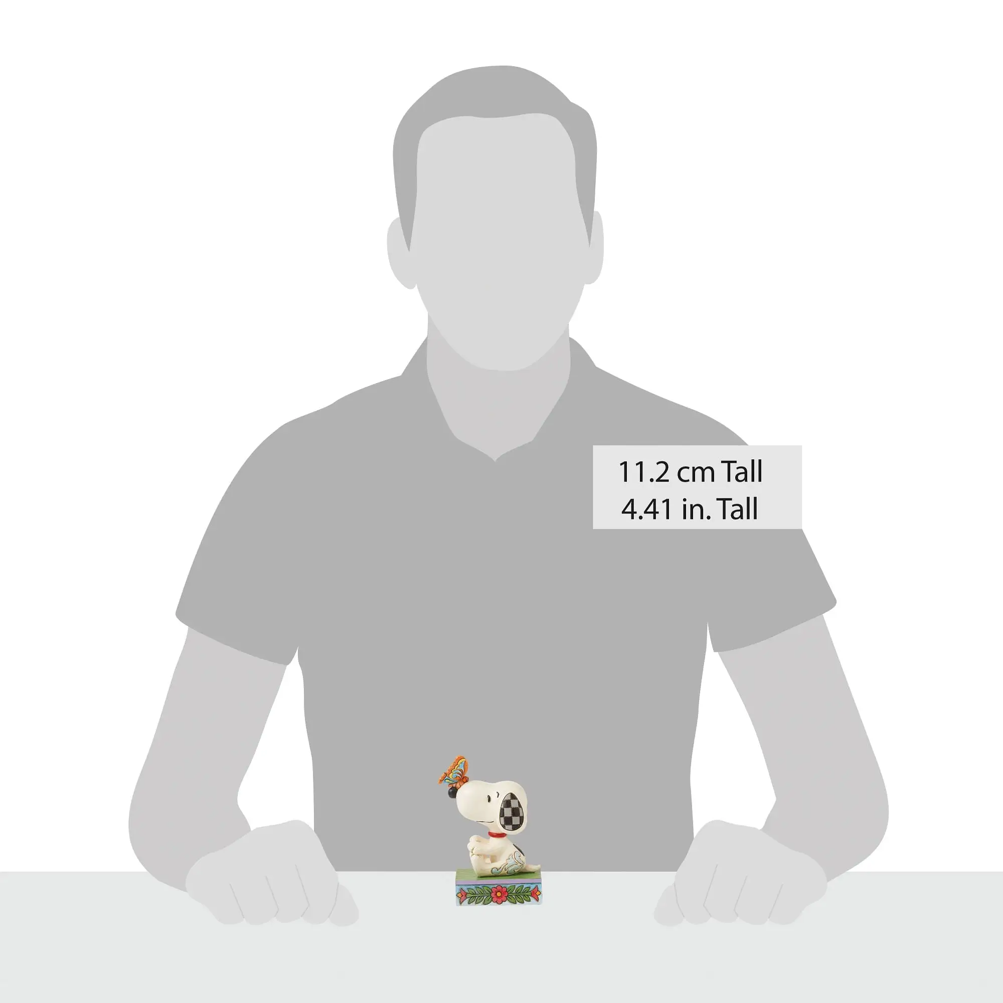 In this enchanting Jim Shore design, Snoopy sits in the grass on a stage decorated with spring flowers, savoring the fresh air. A beautiful butterfly with rosemaling details lands delicately on Snoopy's nose, inviting friendship and balance.