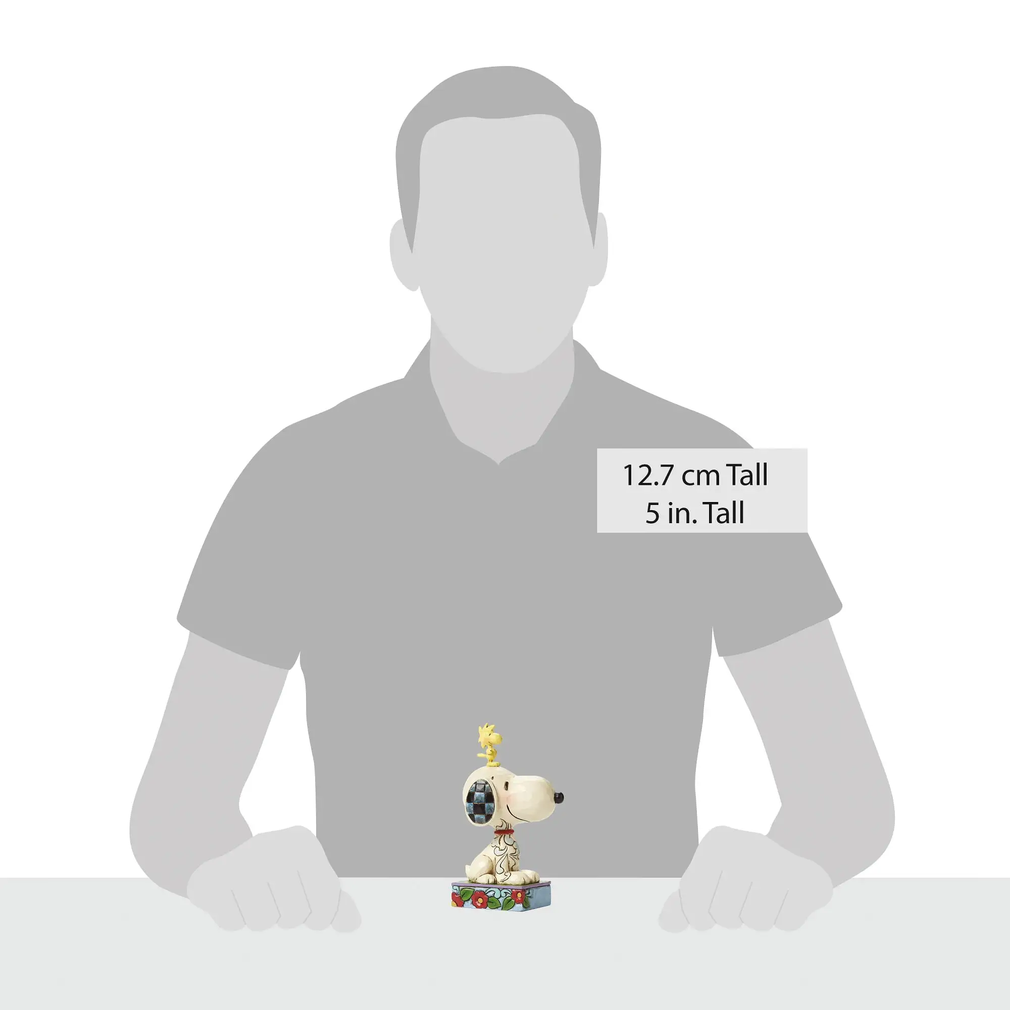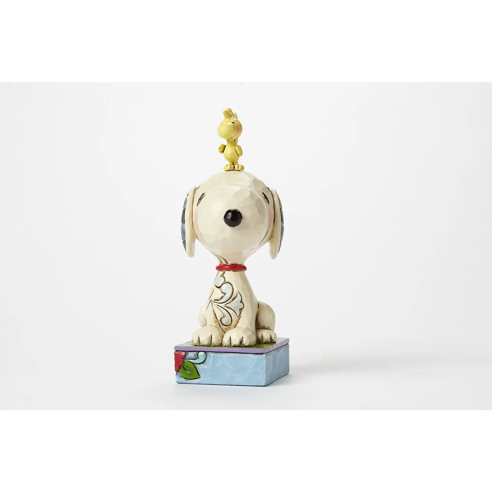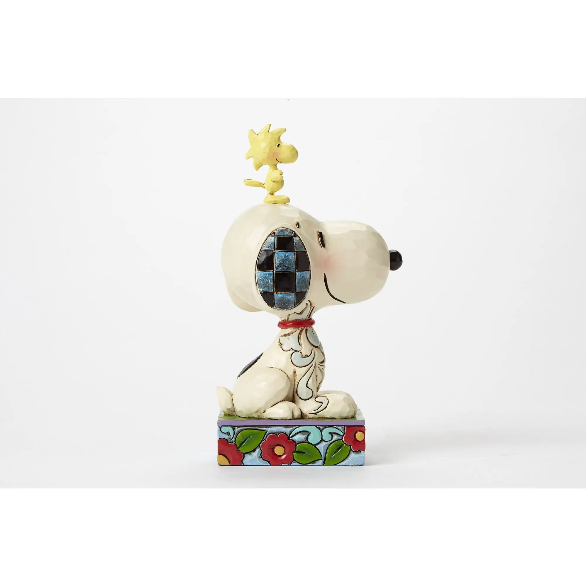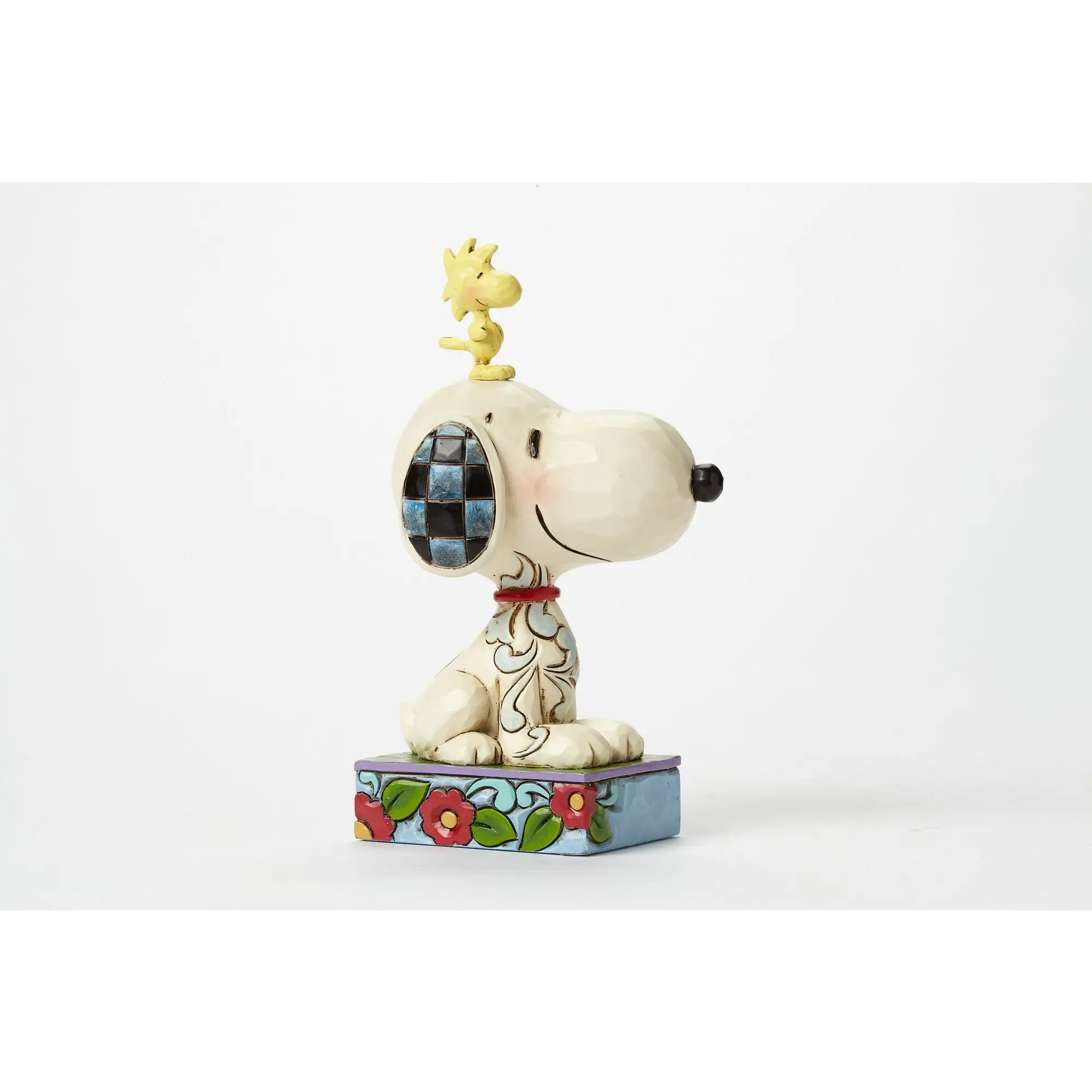 Jim Shore's Personality Poses are colorful creations that capture the essence of a character in a single figurine. This handcrafted design features Snoopy and his best friend, Woodstock, perfectly happy and in sync, just as they are in the beloved comic.