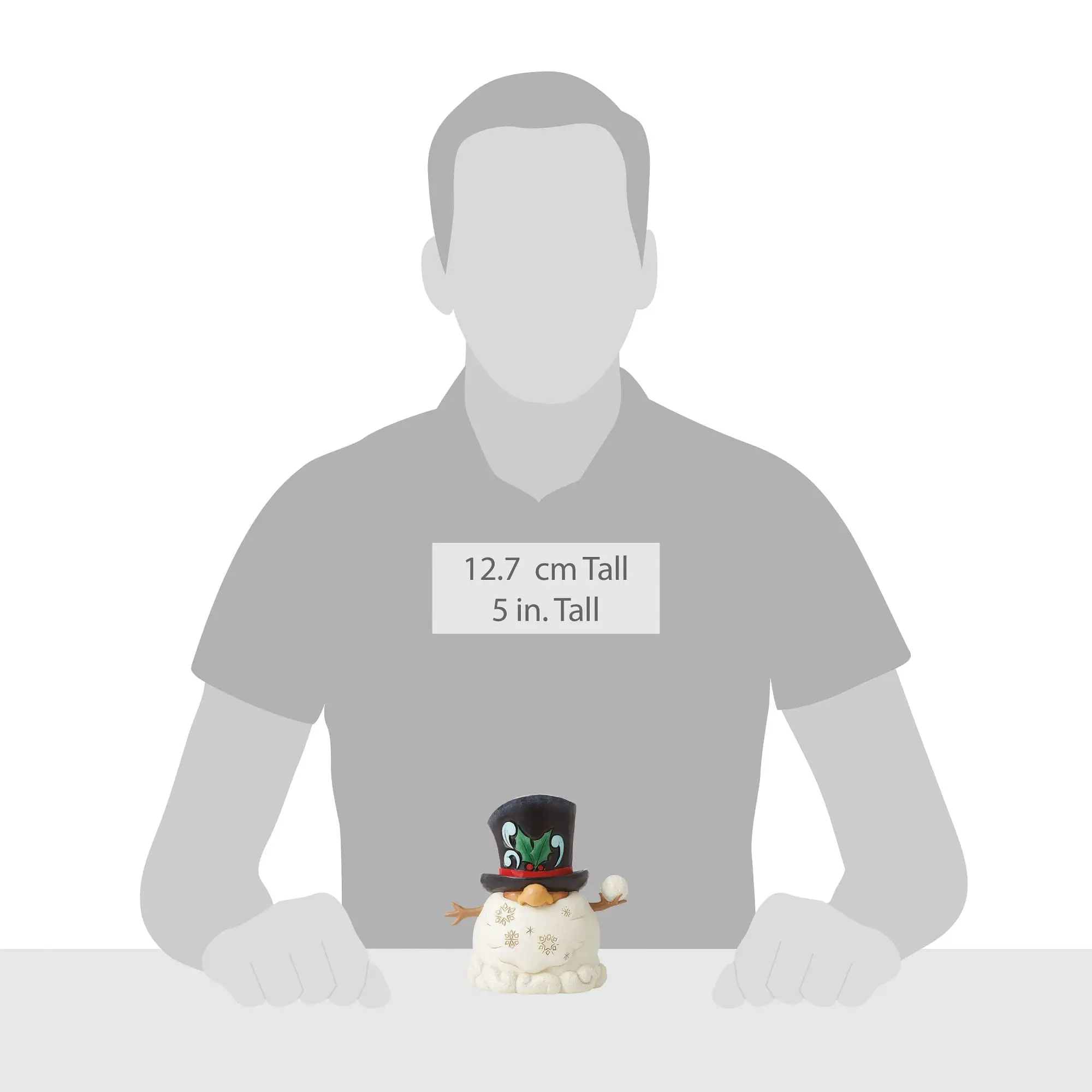 This festive fellow is perfect to bring holiday cheer! With nothing but a nose poking through, even his beard is covered in snowflakes. With stick hands he prepares to throw a snowball and wears a holly brimmed hat.