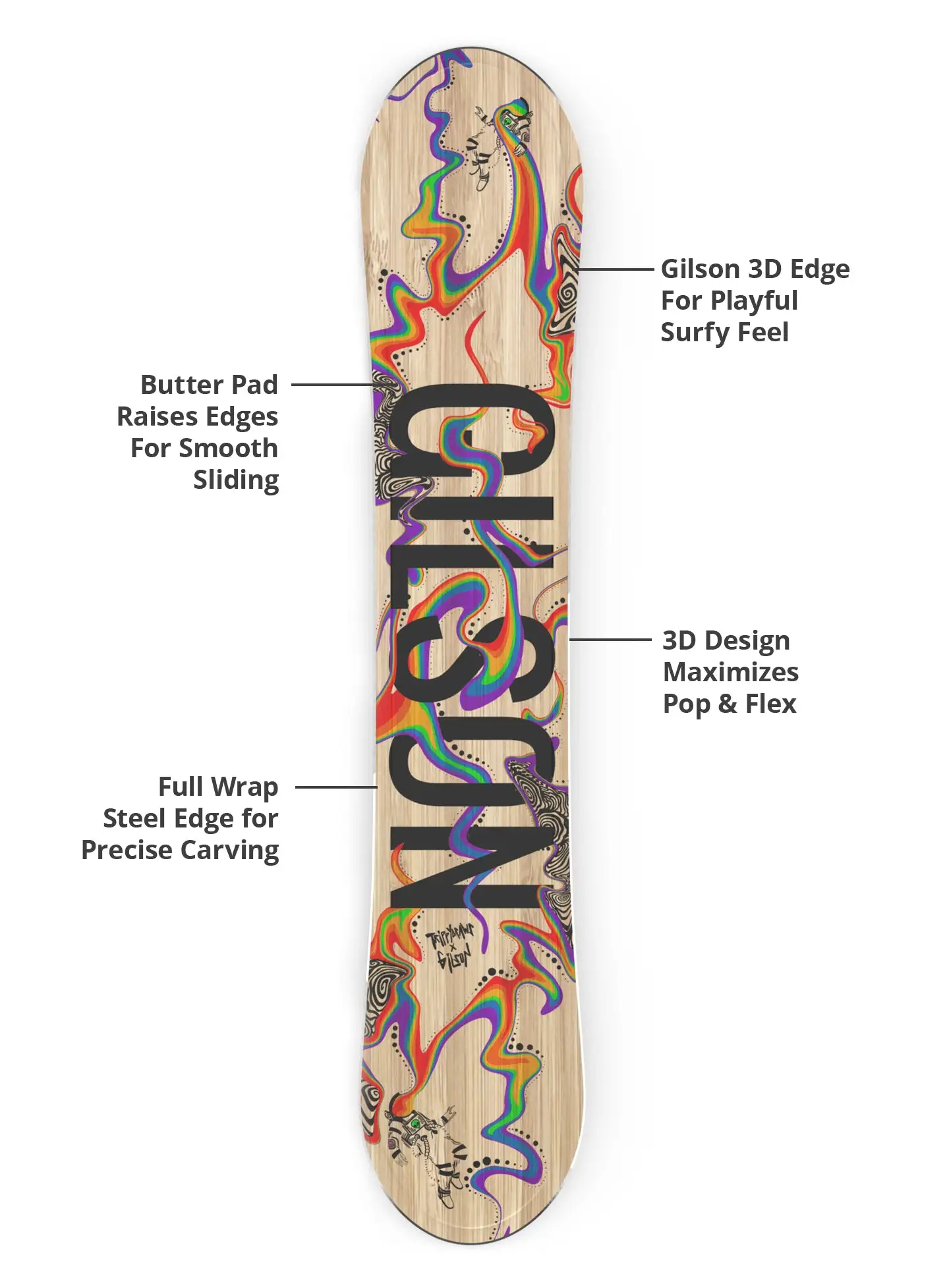 The Space Dust Snowboard is a cosmic explosion of color created in collab with Trippydraws. Packed with psychedelic artwork, wild details, and interstellar vibes, this Limited Edition deck is impossible to miss on the mountain. Built on GILSON’s Hybrid Camber All Mountain design and backed by a 5 year warranty, it delivers smooth surfy performance ready for powder, groomers, and park laps.