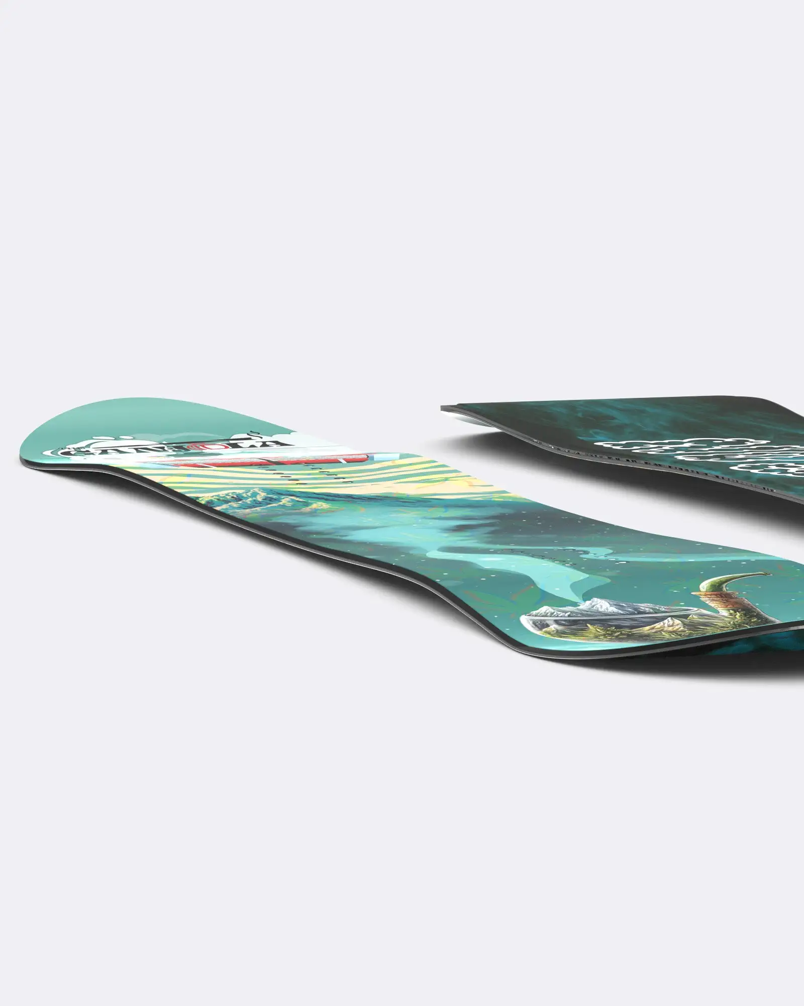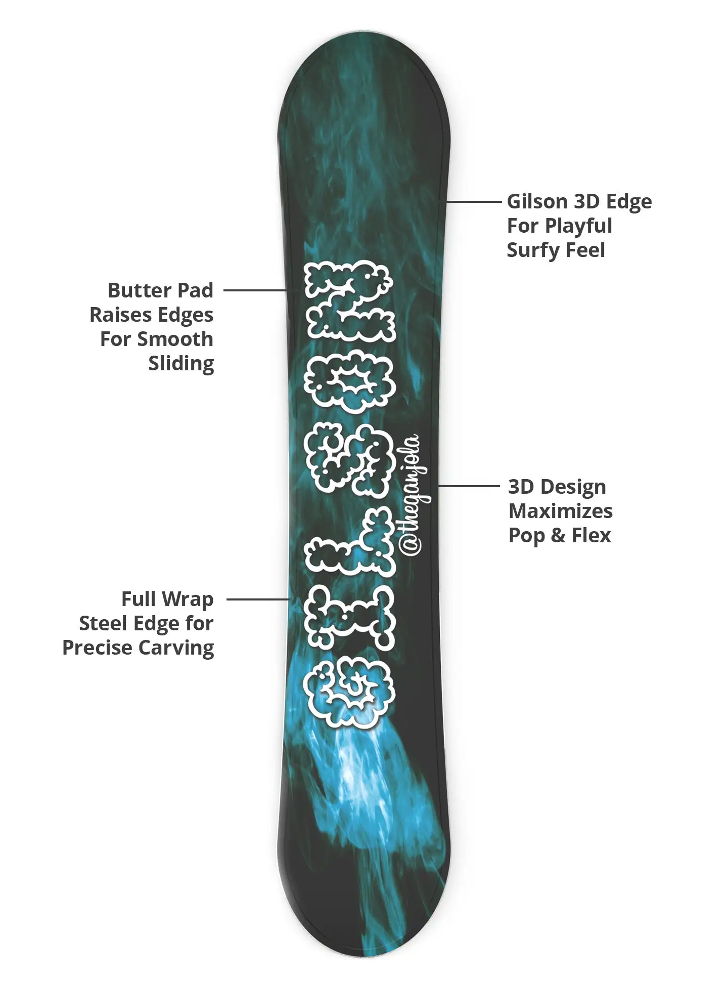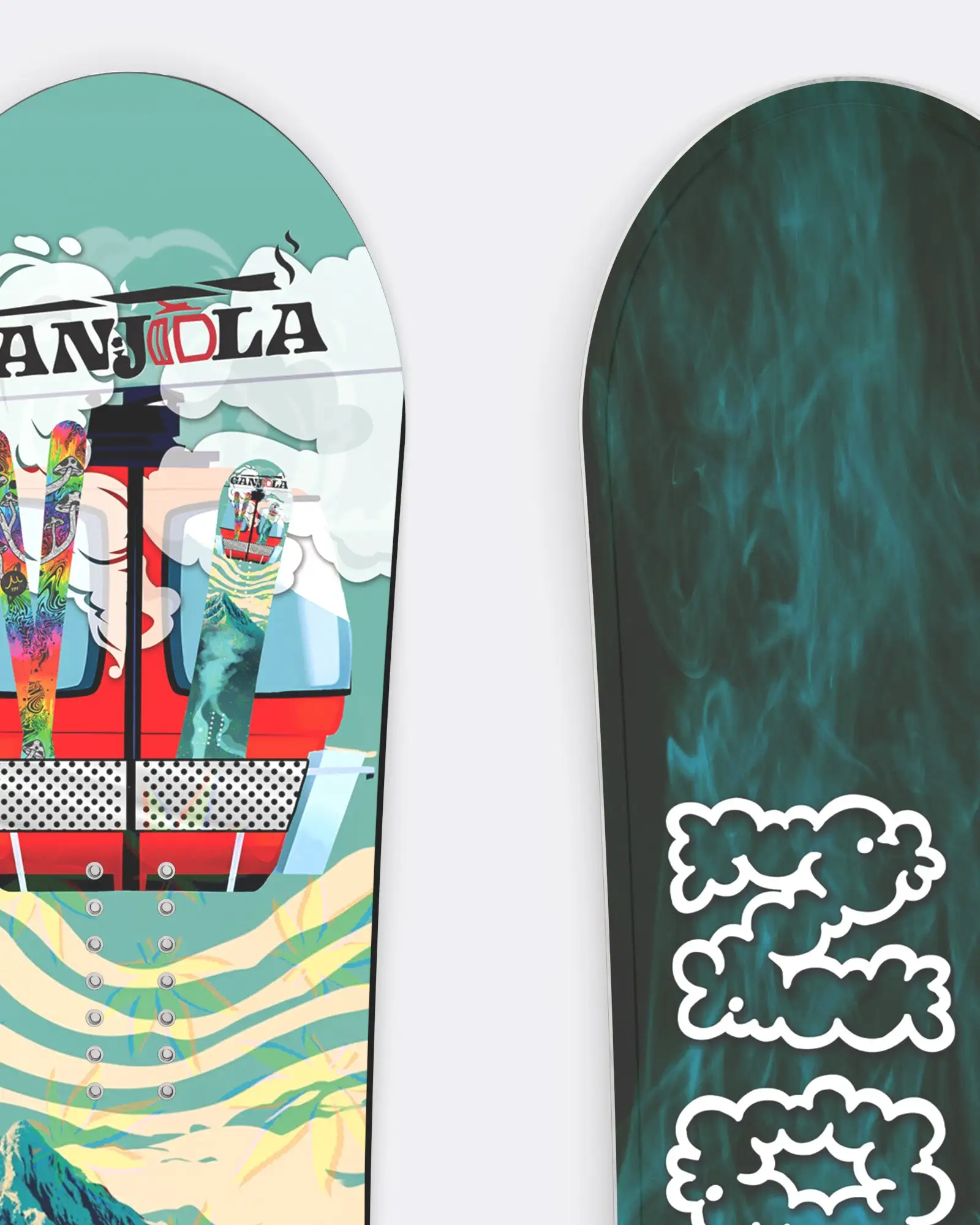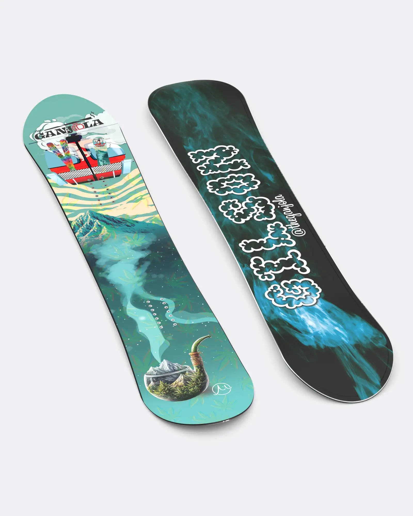 The Ganjola Snowboard is a wild ride of color and character, featuring playful artwork that turns the mountain into a stage for adventure. Packed with bold detail and imaginative design, this Limited Edition deck brings humor and style to every run. Built on GILSON’s Hybrid Camber All Mountain model and backed by a 5 year warranty, it delivers smooth surfy performance from powder to groomers.