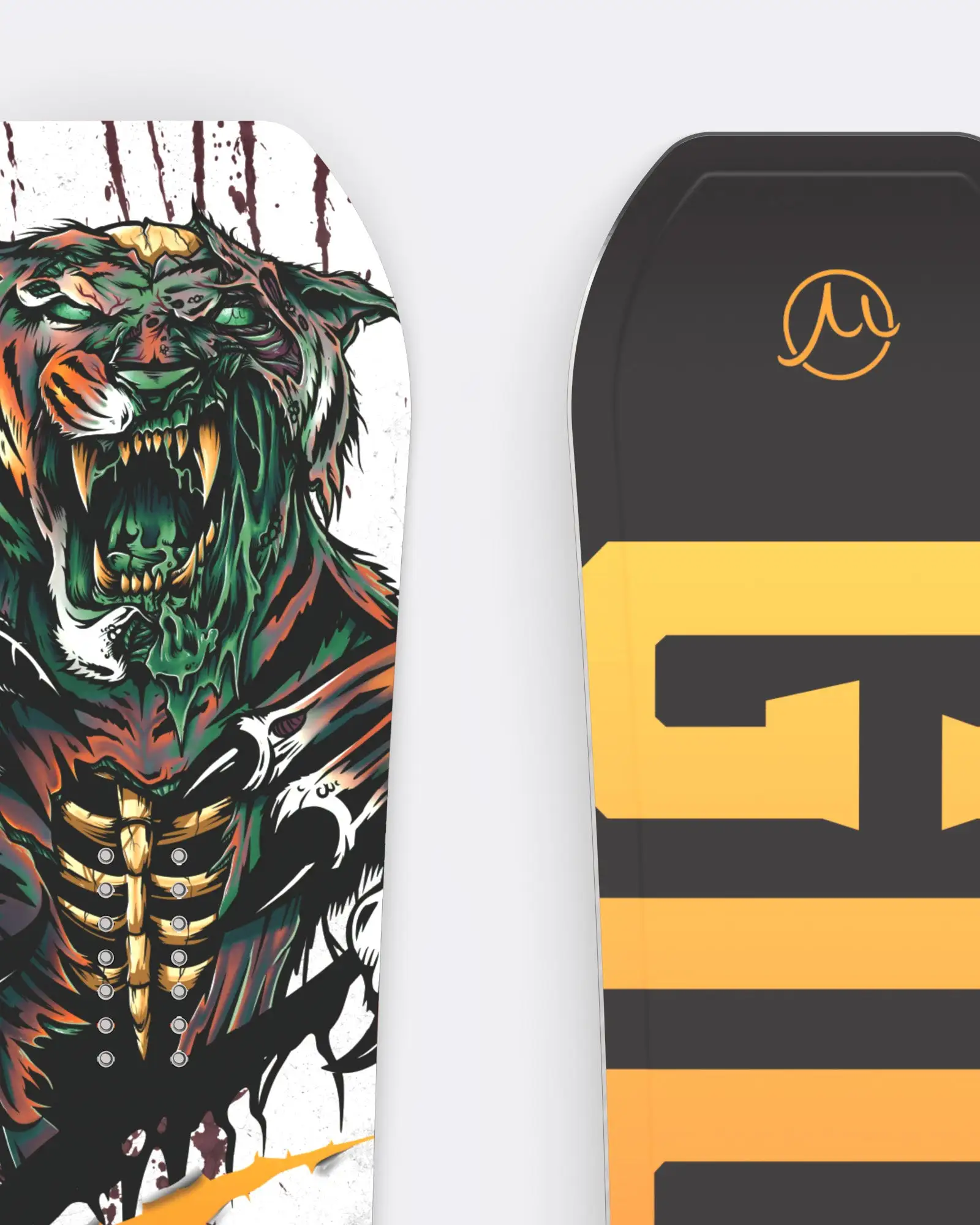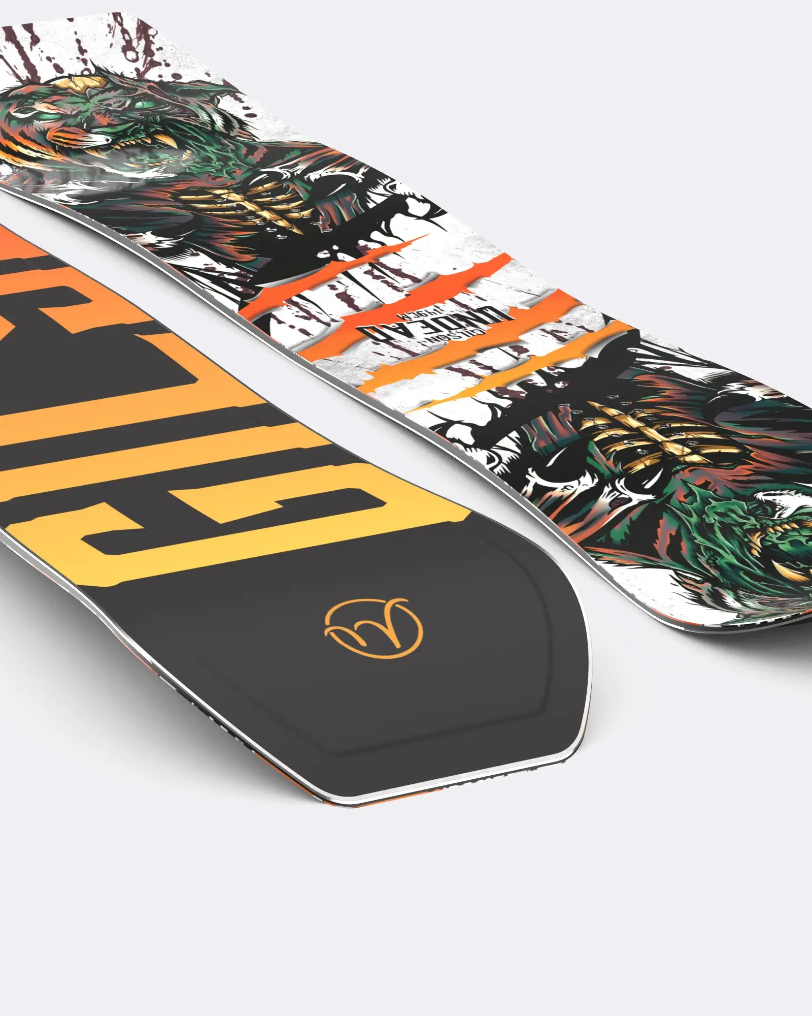 The Tiger Undead is alive with ferocity, featuring a graphic that unleashes raw power with every run. This board’s snarling, skeletal tiger captures the untamed spirit of riders who crave attention in the lift line and domination on the mountain. Paired with GILSON's best selling Freestyle Hybrid Camber design, it delivers smooth control, pop, and playful versatility for park laps or all mountain charging. Let the animal out.