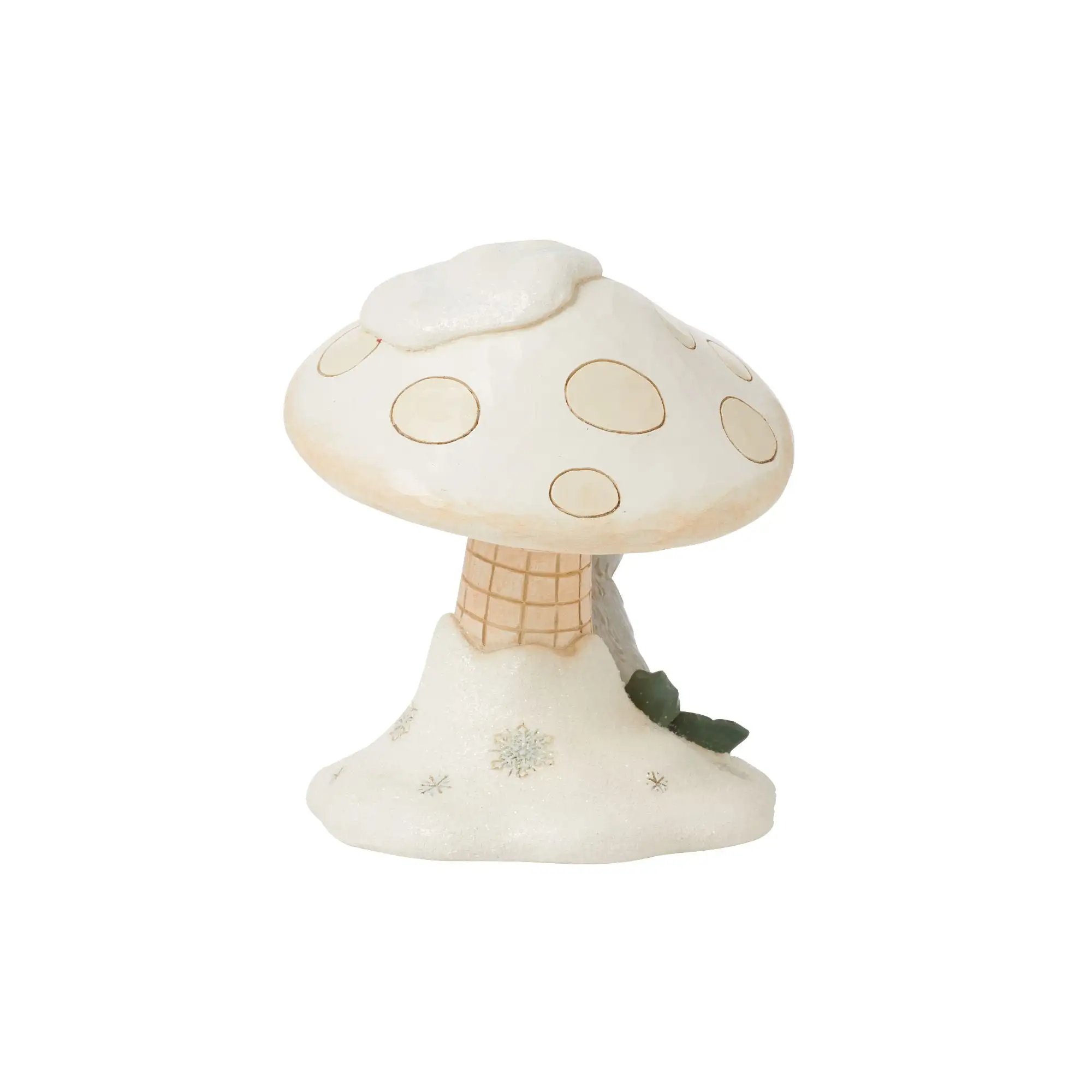 This tiny bunny from Jim Shore shares a scene of wintertime wonder in the White Woodland. With rosemaling fur and rosy cheeks, this darling bunny seeks shelter from the snow under a patchwork patterned mushroom cap. Snowflakes sparkle at her feet.