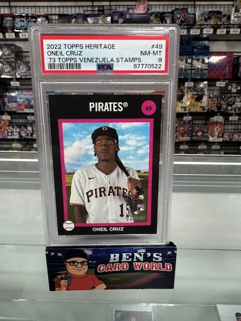 2022 TOPPS HERITAGE ’73 TOPPS VENEZUELA STAMPS #49 ONEIL CRUZ PSA 8