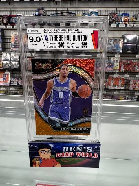 2020-21 SELECT PRIZMS RED WHITE ORANGE SHIMMER #289 TYRESE HALIBURTON HGA 9.0