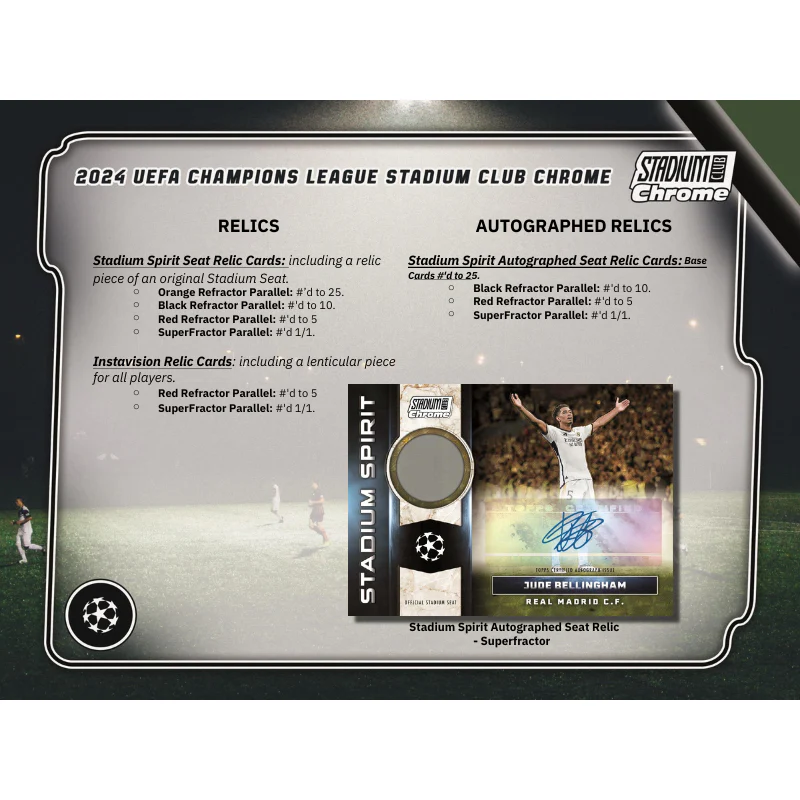 - Brand-new Stadium Spirit Seat Relic and Autograph Relic cards feature an original piece of Stadium memorabilia. Exclusive Classic Kits Autograph cards fall one in every Case.