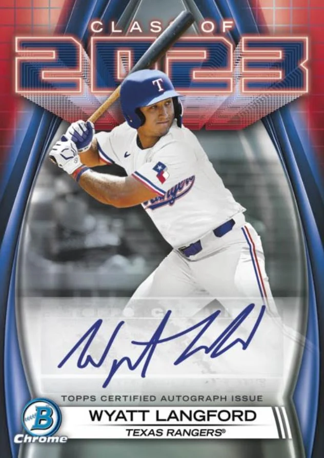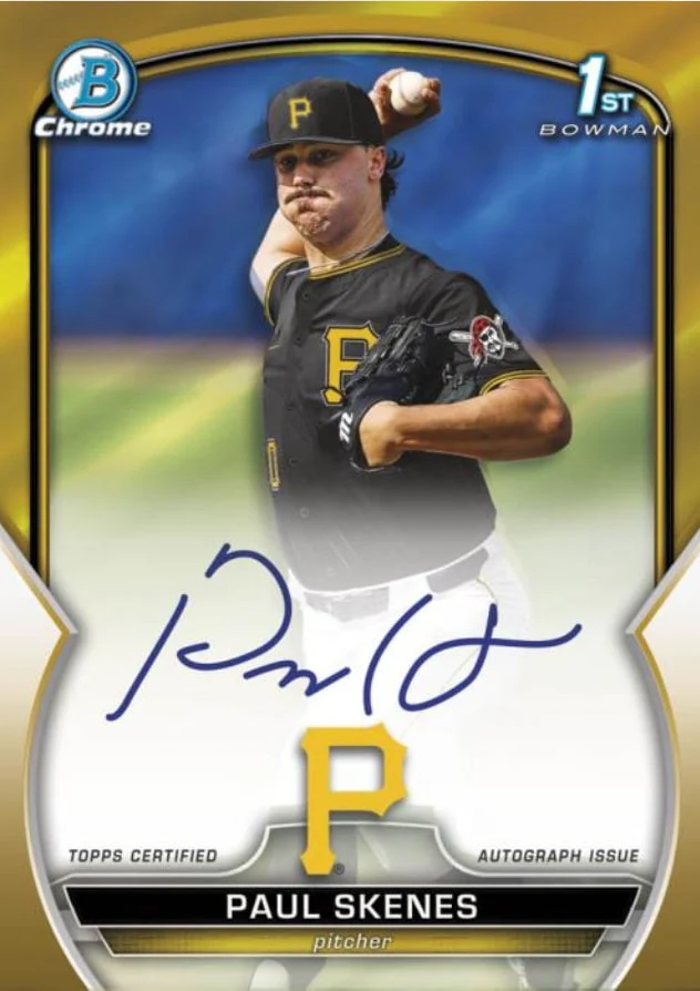 Look for the 1st Bowman Cards of Wyatt Langford, Paul Skenes, Matt Shaw, Max Clark, Colt Emerson, Jacob Wilson, Josue De Paula, Enrique Bradfield, Hurston Waldrep, Rhett Lowder, Noble Meyer, Tommy Troy, Bryce Eldridge, Brayden Taylor, Dillon Head, Jonny Farmelo, Tai Peete, Cole Carrigg, Chase Davis, Colton Ledbetter, and Mac Horvath!