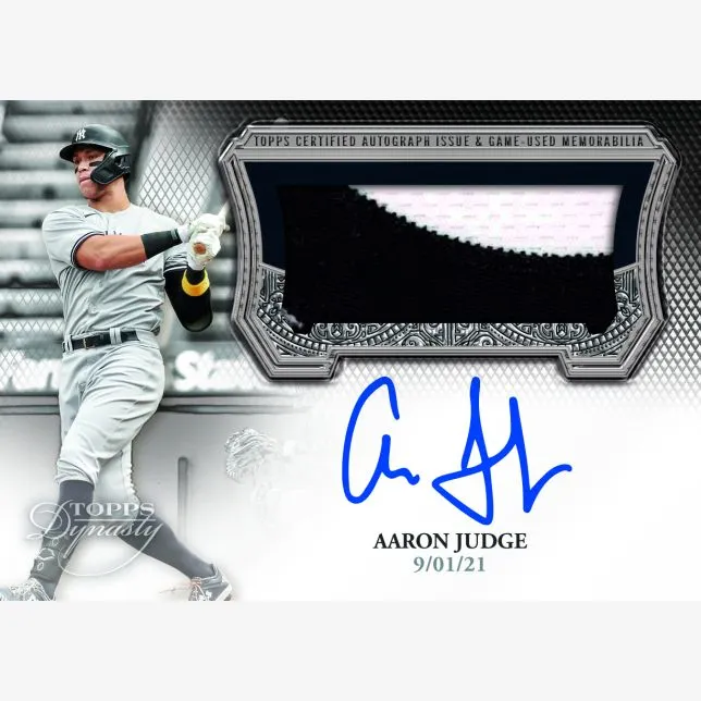 - Dynasty Autographed Patch Cards - Action featuring jumbos strip patch pieces of game-used uniforms, action images, and on-card autographs. Cards are #’d to 10 with a Silver parallel #’d to 5 and Gold 1/1 parallel.