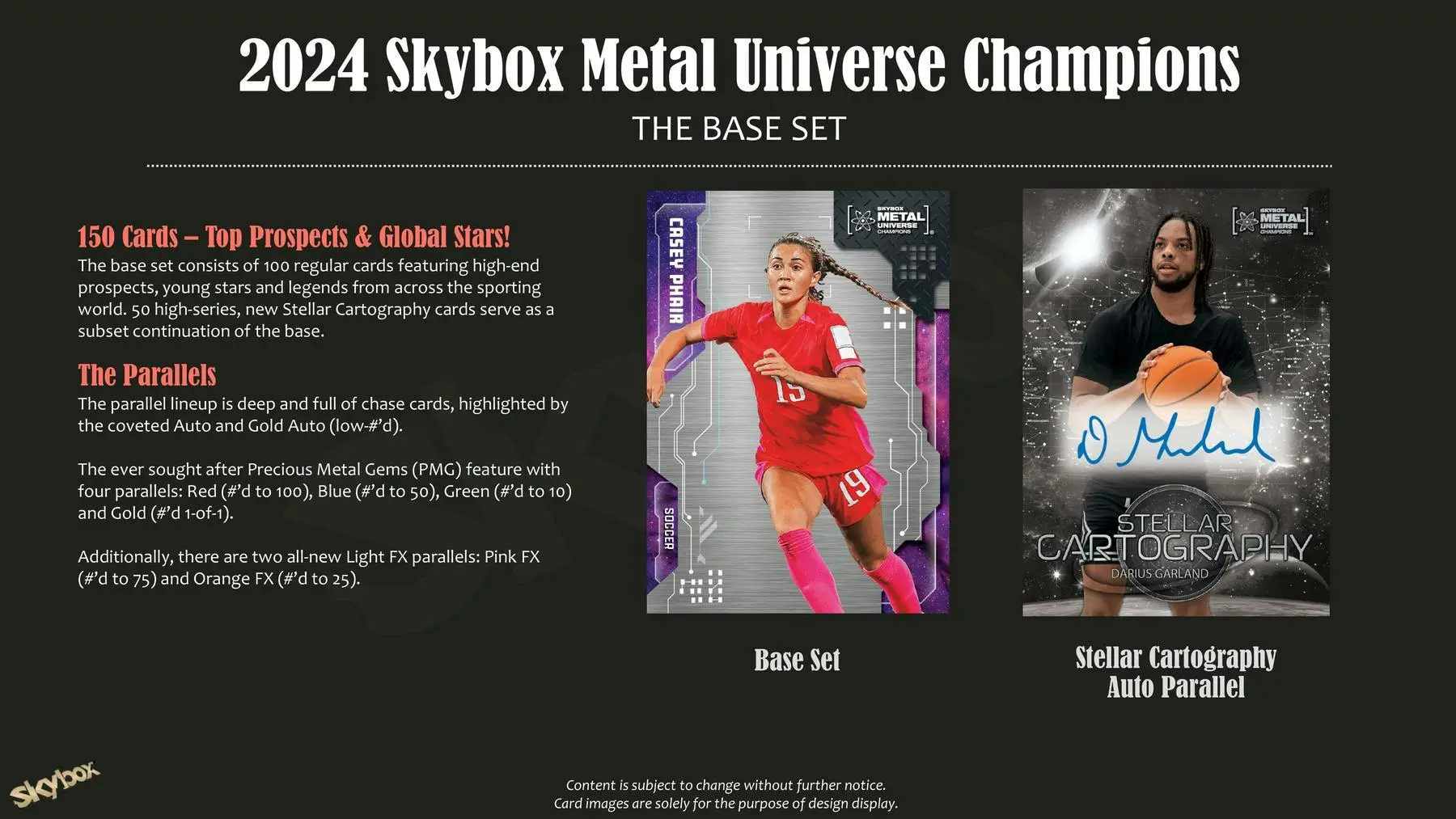 - NEW! Metal-X: This beautiful case hit makes a debut in the 2024 product. Printed on PETG, these shimmering metallic cards deliver a checklist featuring nothing but the highest quality subjects.