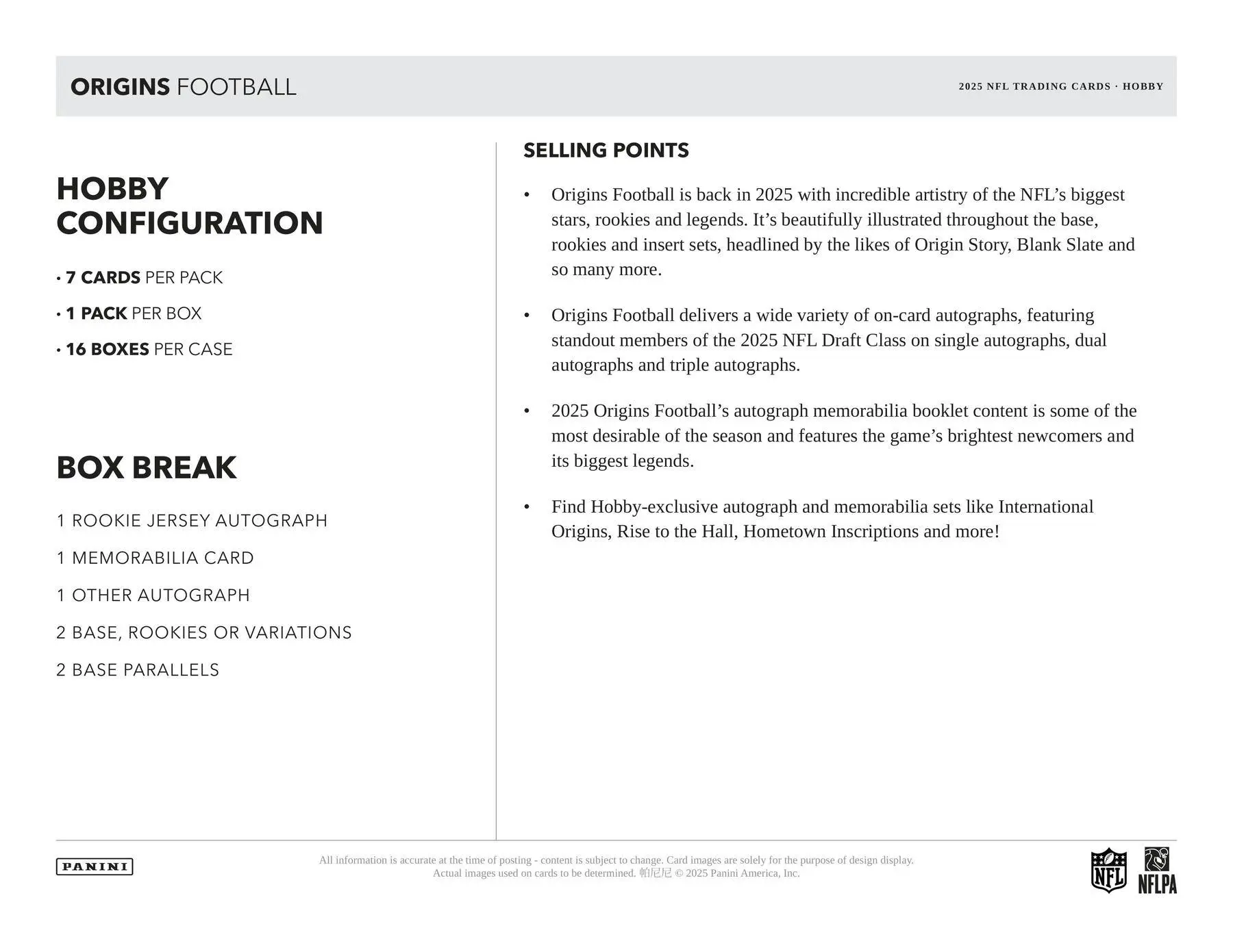 Origins Football is back in 2025 with incredible artistry of the NFL's biggest stars, rookies and legends. It's beautifully illustrated throughout the base, rookies and insert sets, headlined by the likes of Origin Story, Blank Slate and so many more.